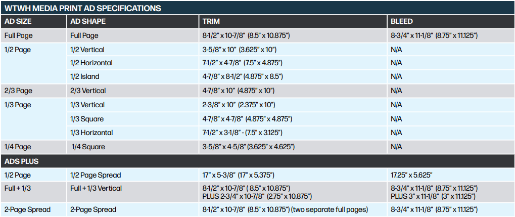 Please submit ads via the WTWH Ad Portal at ads.wtwhmedia.com.